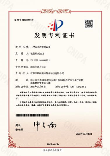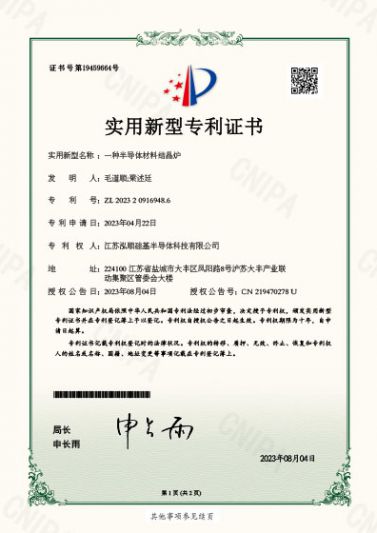 ? 近期,江蘇泓順硅基半導體科技有限公司接連獲得5項專利授權,其中3項發明專利,2項實用新型專利。公司已累計獲得專利授權16項,其中發明專利11項,實用新型專利...